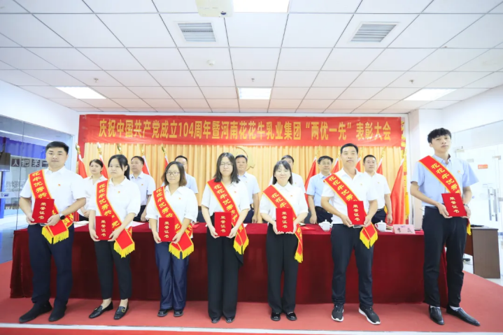 為弘揚偉大建黨精神,深化作風建設,凝聚奮進力量,7月7日,河南花花牛乳業集團召開慶祝中國共產黨成立104周年暨“兩優一先”表彰大會,集團黨委書記、董事長唐洪峰以《以奮進之姿扛使命擔當 繪就花花牛高質量發展新畫卷》為題作專題黨課輔導報告。